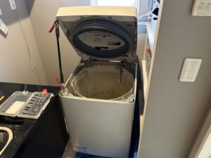 今回は、壁ギリギリの場所に設置された洗濯機でも、安全かつ丁寧に分解クリーニングを実施しました。